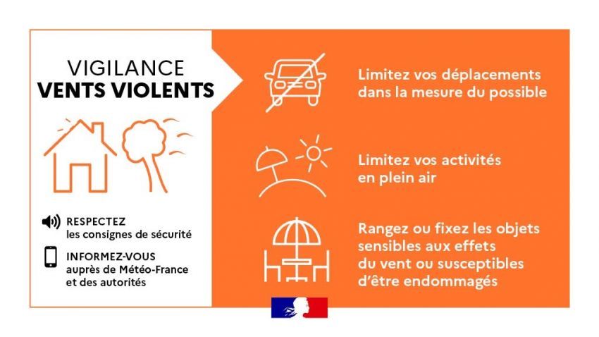 En raison de la vigilance vents violents annoncée par Météo-France, nous attirons votre attention sur les consignes à respecter afin d’éviter les accidents.
