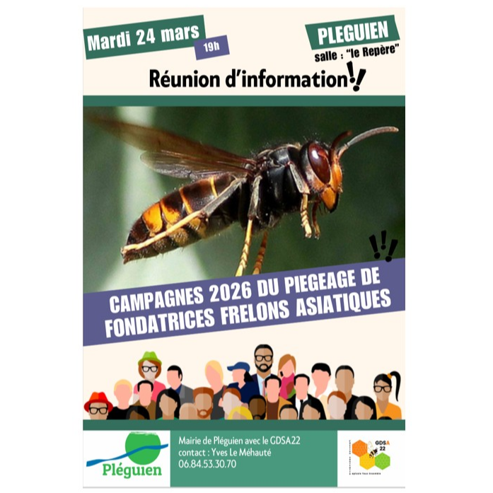 Après une année blanche dans le cadre de la campagne PPF «Piégeage de Printemps des Fondatrices de frelons Asiatiques à pattes jaunes», la commune de Pléguien lance sa campagne de lutte contre le frelon asiatique.